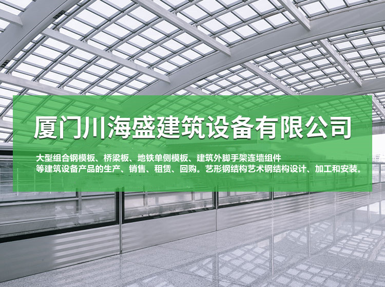 厦门川海盛建筑设备有限公司位于我国福建省厦门市海沧区东孚镇天竺山景区东门旁,主要从事大型组合钢模板、新型建筑模板支撑组合结构、建筑外脚手架连墙组件等建筑设备产品的生产、销售、租赁、回购和科学技术开发。公司现有经营管理人员五十多人,技术人员一百多人,固定资产五千万元。凭借着在大型组合钢模板和建筑模板支撑组合结构上的专业水平和成熟的技术,在该领域迅速崛起。